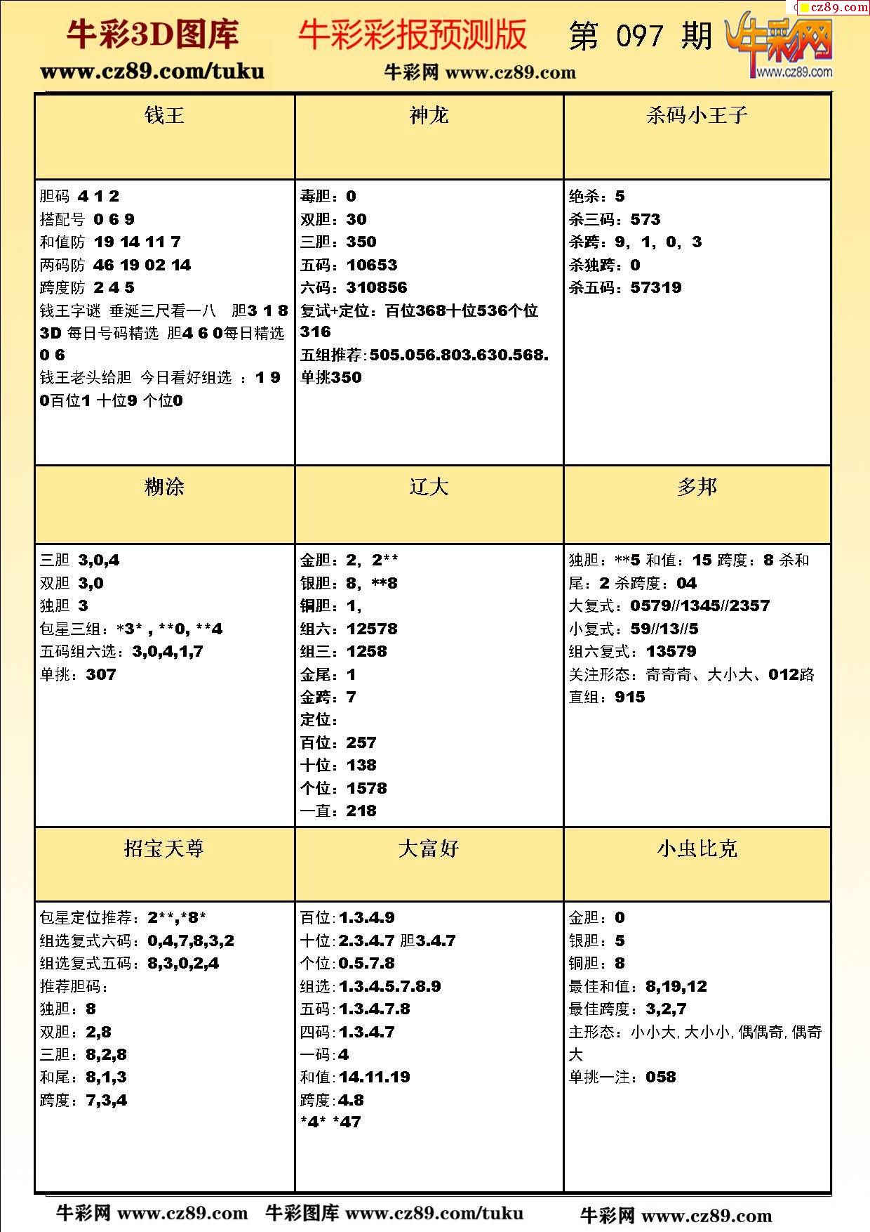 牛彩版3D预测彩报图26年097期打印版