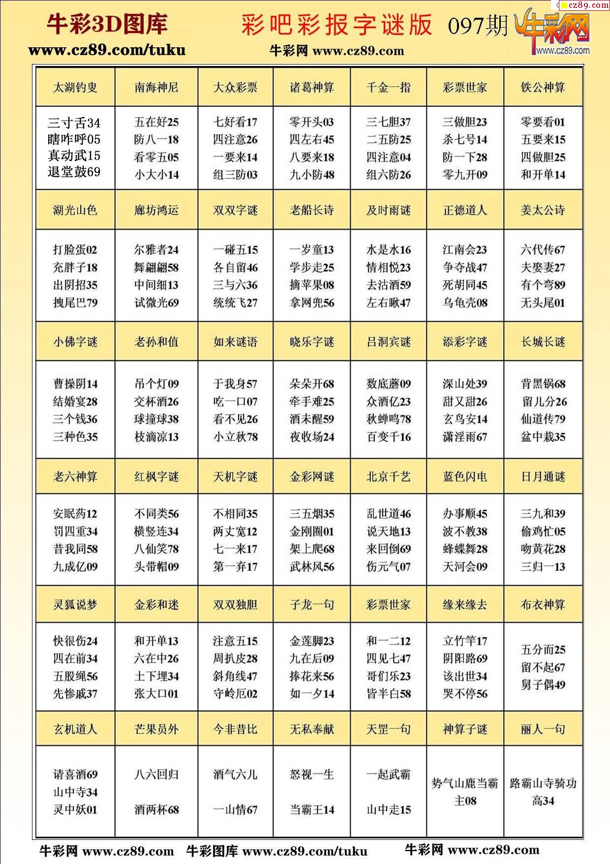 > 牛彩版3D字谜彩报图26年097期打印版