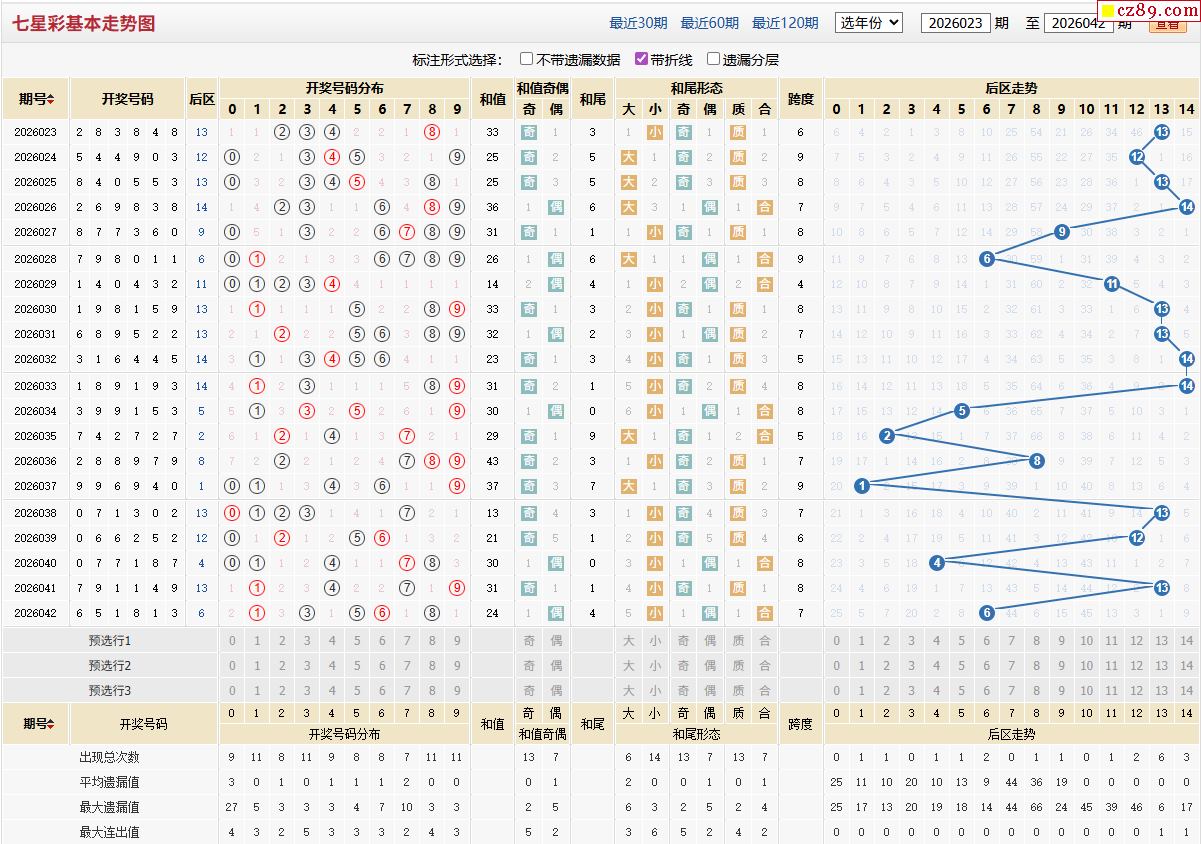 首页 > 七星彩预测 > 26年043期体彩七星彩近期走势图分析